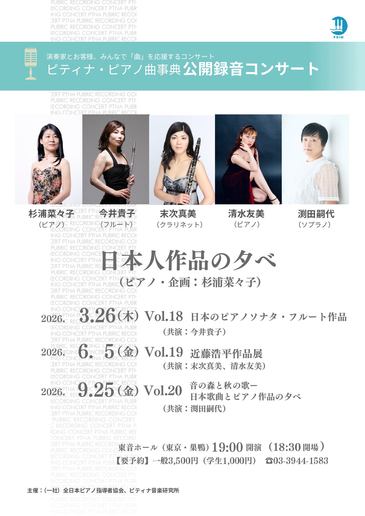 2025年5月に行われた全日本ピアノ指導者協会(ピティナ)と杉浦菜々子の共同主催によるオーディションによって選出されたピアニストによる公演です。プロのアーティストとして、また、ピアノ指導者としてご活躍の方のほか、アマチュアピアニストで独自の活動を展開している方も一緒に日本人作品を盛り上げます。
